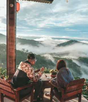 Tuy nhiên, điểm thu hút chính của quán cà phê Kimochi chính là view săn mây đầy gợi cảm. Các quầy bar và bàn ghế được sắp xếp đều quanh quán nhìn ra toàn cảnh núi non.