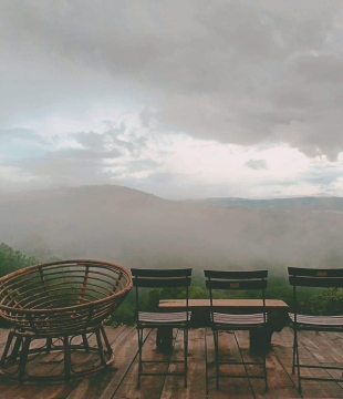 Tuy nhiên, điểm thu hút chính của quán cà phê Kimochi chính là view săn mây đầy gợi cảm. Các quầy bar và bàn ghế được sắp xếp đều quanh quán nhìn ra toàn cảnh núi non.